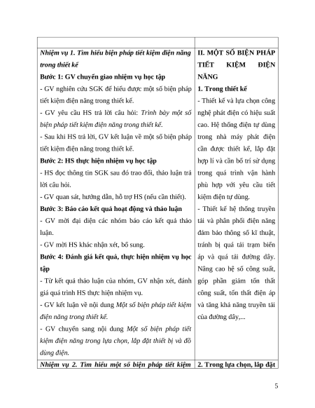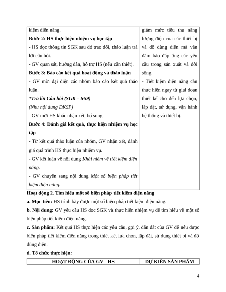 Hoạt động 2. Tìm hiểu một số biện pháp tiết kiệm điện năng