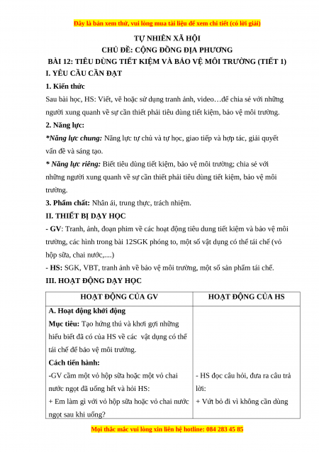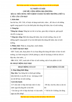 BÀI 12: TIÊU DÙNG TIẾT KIỆM VÀ BẢO VỆ MÔI TRƯỜNG (TIẾT 1)