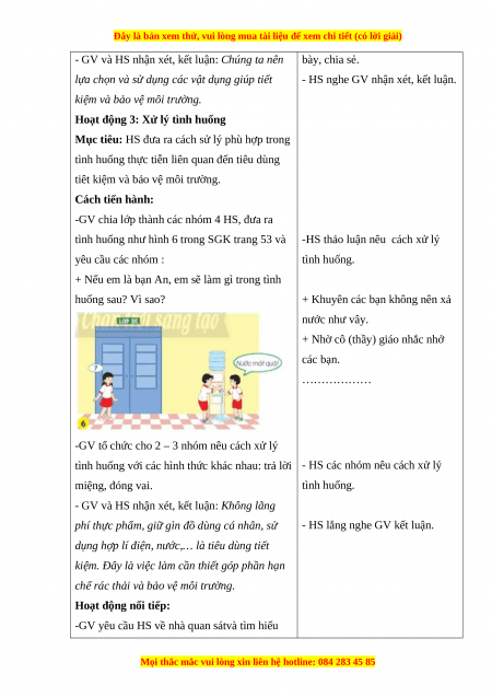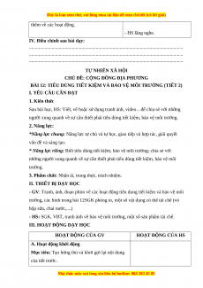hiện tiêu dùng tiết kiệm và bảo vệ môi trường. Cách tiến hành: