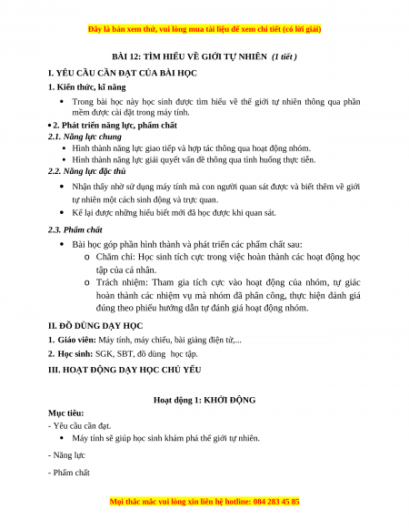 BÀI 12: TÌM HIỂU VỀ GIỚI TỰ NHIÊN (1 tiết )