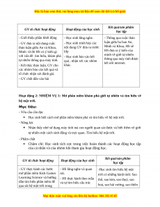 - Giao nhiệm vụ: Học sinh thực hiện hoạt động vào ngoài giờ lên lớp