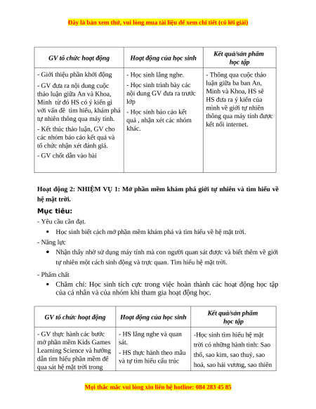 Hoạt động 2: NHIỆM VỤ 1: Mở phần mềm khám phá giới tự nhiên và tìm hiểu về hệ mặt trời. Mục tiêu: - Yêu cầu cần đạt.