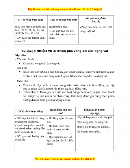 Hoạt động 3: NHIỆM VỤ 2: Khám phá vòng đời của động vật. Mục tiêu: - Yêu cầu cần đạt.