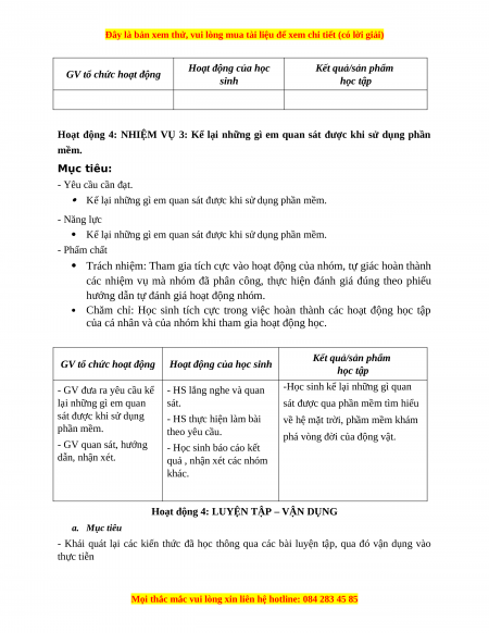 Hoạt động 4: NHIỆM VỤ 3: Kể lại những gì em quan sát được khi sử dụng phần mềm. Mục tiêu: - Yêu cầu cần đạt.