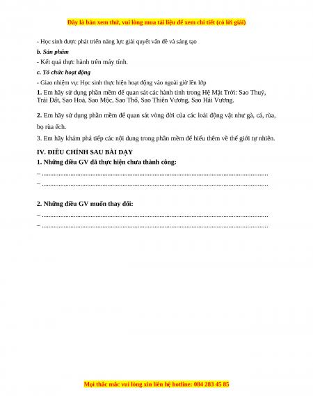 IV. ĐIỀU CHỈNH SAU BÀI DẠY