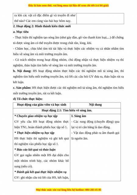 - Nhận thức khoa học tự nhiên: Giải thích được sự truyền sóng âm trong không khí.