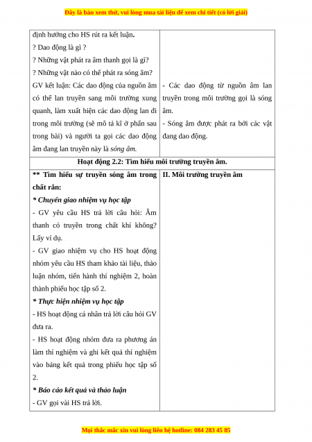 Hoạt động 2.2: Tìm hiểu môi trường truyền âm.
