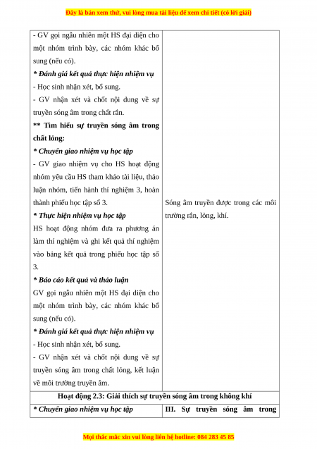 * Chuyển giao nhiệm vụ học tập III. Sự truyền sóng âm trong