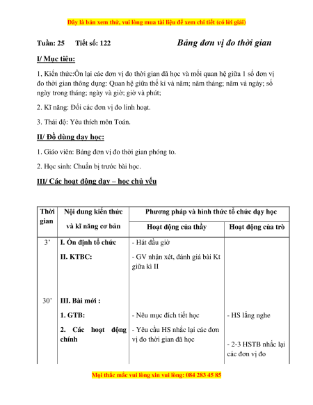 Tuần: 25 Tiết số: 122 Bảng đơn vị đo thời gian