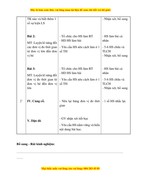 - Nêu lại bảng đơn vị đo thời - 1 số HS nhắc lại. gian - GV nhận xét tiết học V. Dặn dò