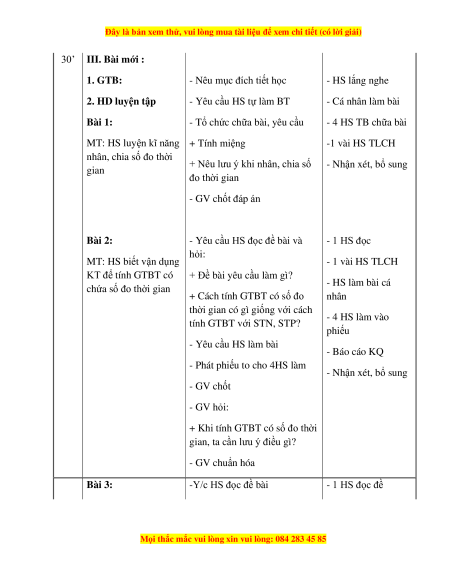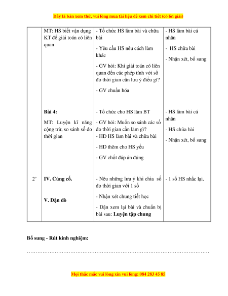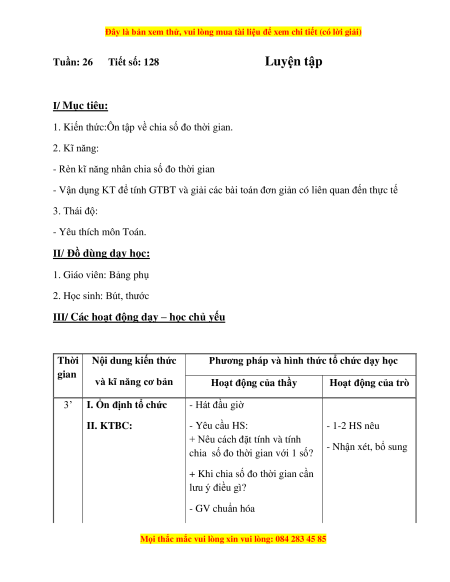1. Kiến thức:Ôn tập về chia số đo thời gian. 2. Kĩ năng: