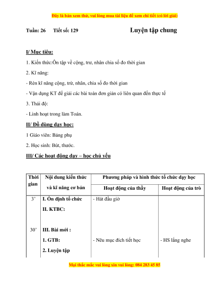 Tuần: 26 Tiết số: 129 Luyện tập chung I/ Mục tiêu: