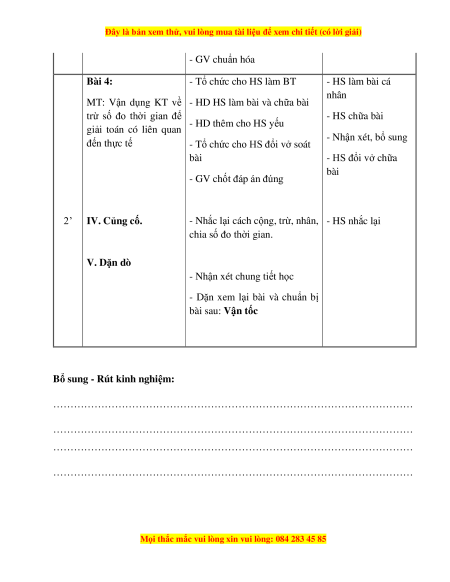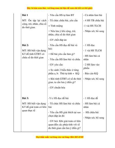 - Rèn kĩ năng cộng, trừ, nhân, chia số đo thời gian