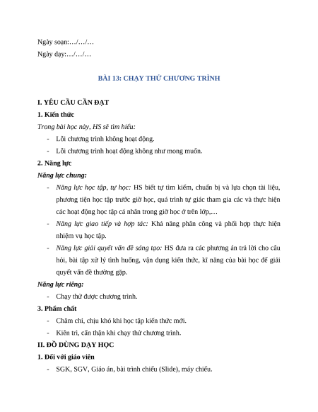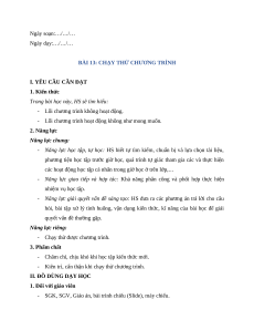 Giáo án Bài 13: Chạy thử chương trình Tin học lớp 5 Chân trời sáng tạo