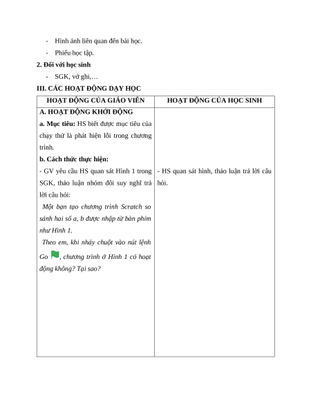 III. CÁC HOẠT ĐỘNG DẠY HỌC
