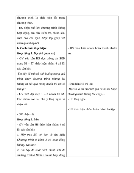 hoạt động, em cần kiểm tra, chỉnh sửa,