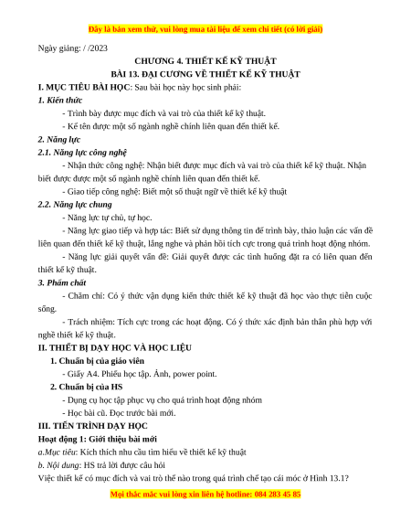 Giáo án Bài 13 Công nghệ 8 Chân trời sáng tạo: Đại cương về thiết kế kĩ thuật