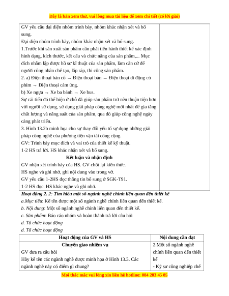 b. Nội dung: Mục đích và vai trò của thiết kế kỹ thuật.