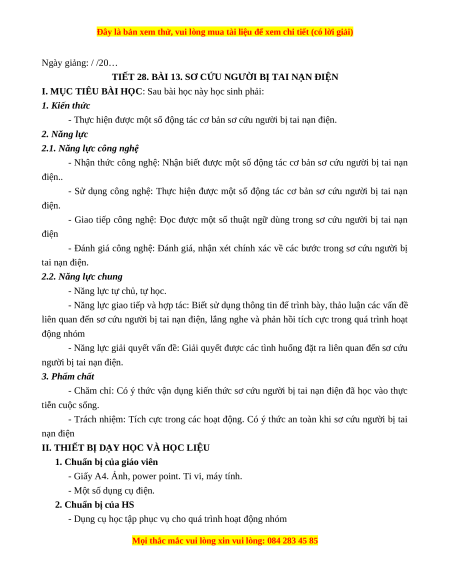 - Thực hiện được một số động tác cơ bản sơ cứu người bị tai nạn điện. 2. Năng lực