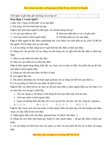 Câu 1: Khi phát hiện người bị điện giật, cần nhanh chóng làm gì?
