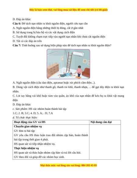 a.Mục tiêu: Trình bày được biện pháp tách nạn nhân ra khỏi nguồn điện