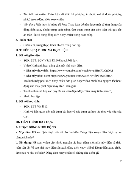 an toàn khi sử dụng dòng điện xoay chiều trong cuộc sống. 3. Phẩm chất