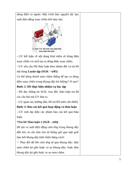 - Thảo luận để thiết kế phương án (hoặc mô tả được phương pháp) tạo ra dòng điện xoay chiều.