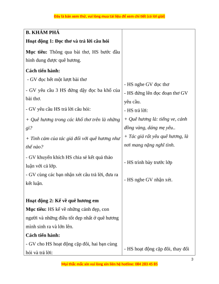 - HS hoạt động cặp đôi, thay đổi hỏi và trả lời: 3