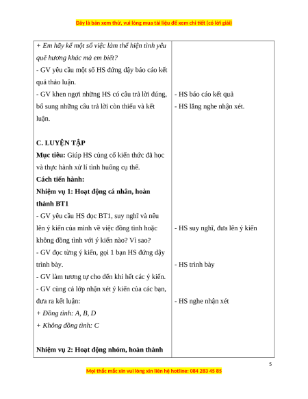 - Năng lực giao tiếp, hợp tác: Trao đổi, thảo luận để thực hiện các nhiệm vụ học tập.