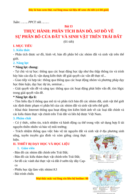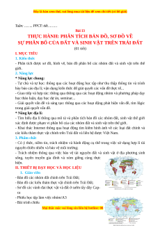 Giáo án Bài 13 Địa lí 10 Cánh diều: Thực hành: Phân tích bản đồ, sơ đồ về phân bố của đất và sinh vật trên thế giới