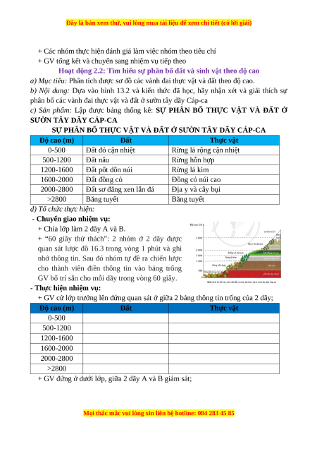 Hoạt động 2.2: Tìm hiểu sự phân bố đất và sinh vật theo độ cao