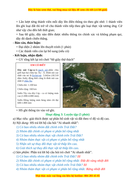 - Tìm hiểu địa lí thông qua mô tả và phân tích bản đồ các nhóm đất, sinh vật thế giới