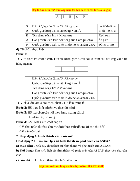 2. Học sinh: SGK, sưu tầm tài liệu có liên quan đến ASEAN.