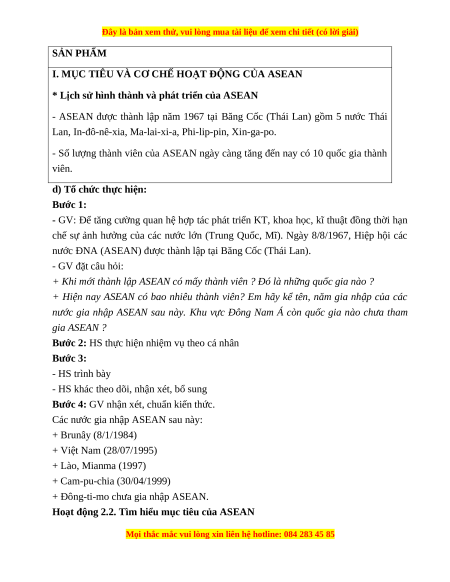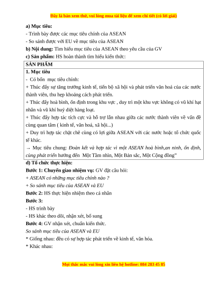 - Nêu được mục tiêu của ASEAN, so sánh được mục tiêu của ASEAN với EU; cơ
