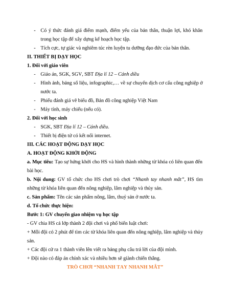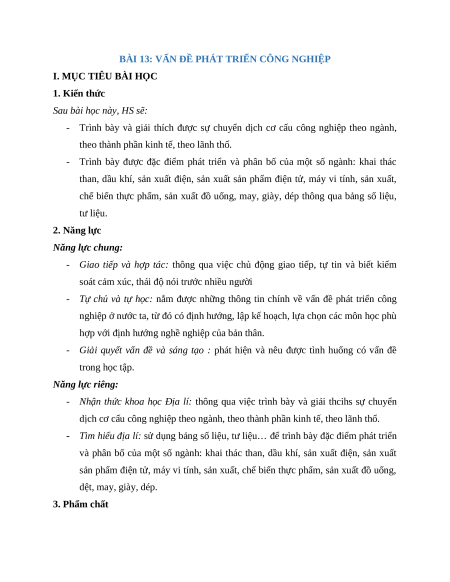 Giáo án Bài 13 Địa lí 12 Cánh diều: Vấn đề phát triển công nghiệp