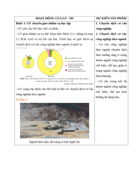 Hoạt động 1. Tìm hiểu chuyển dịch cơ cấu công nghiệp theo ngành