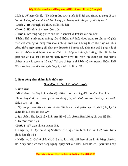 Cách 2: GV nêu vấn đề: “Em hãy tưởng tượng nếu Trái đất của chúng ta cũng bị bao