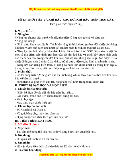 - Bài 13: Thời tiết và khí hậu. Các đới khí hậu trên Trái đất.