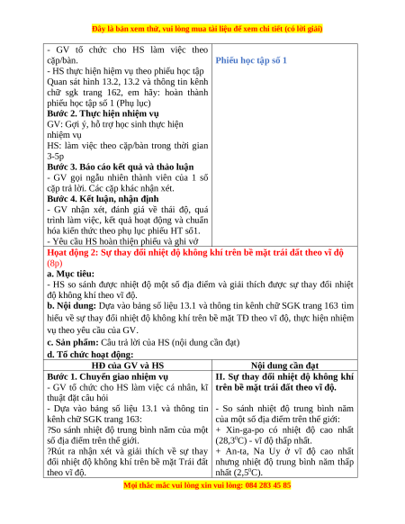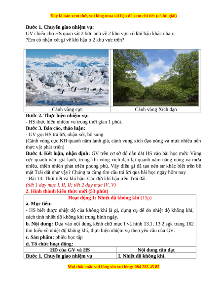 - Nhận thức khoa học địa lý: Trình bày và giải thích được sự thay đổi nhiệt độ không