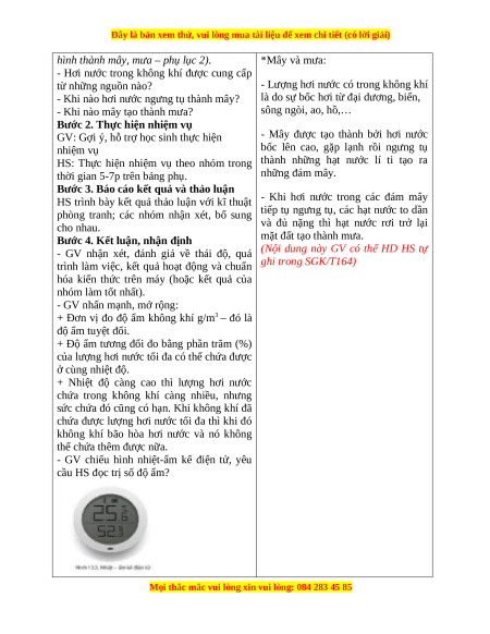 - Mô tả được hiện tượng hình thành mây, mưa.
