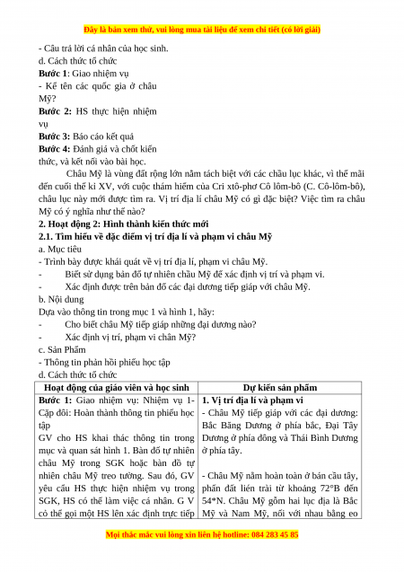 nhiên châu Mỹ treo tường. Sau đó, GV