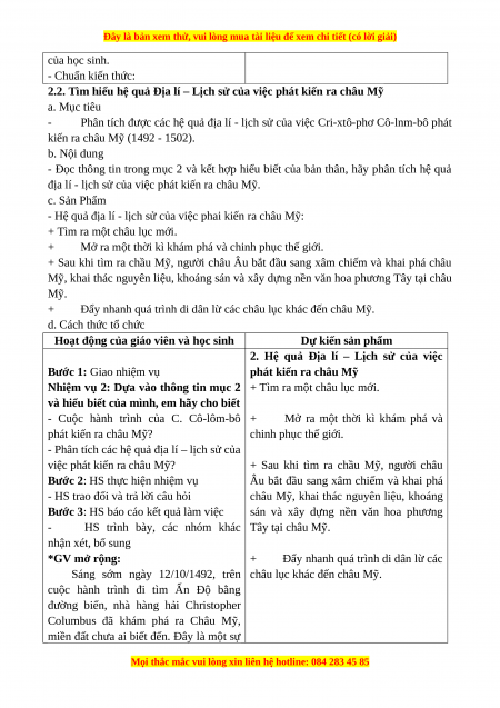 2.2. Tìm hiểu hệ quả Địa lí – Lịch sử của việc phát kiến ra châu Mỹ a. Mục tiêu -