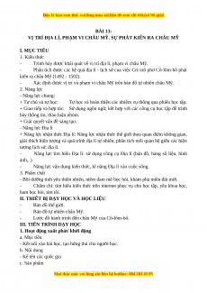 VỊ TRÍ ĐỊA LÍ, PHẠM VI CHÂU MỸ. SỰ PHÁT KIẾN RA CHÂU MỸ I. MỤC TIÊU 1. Kiến thức -