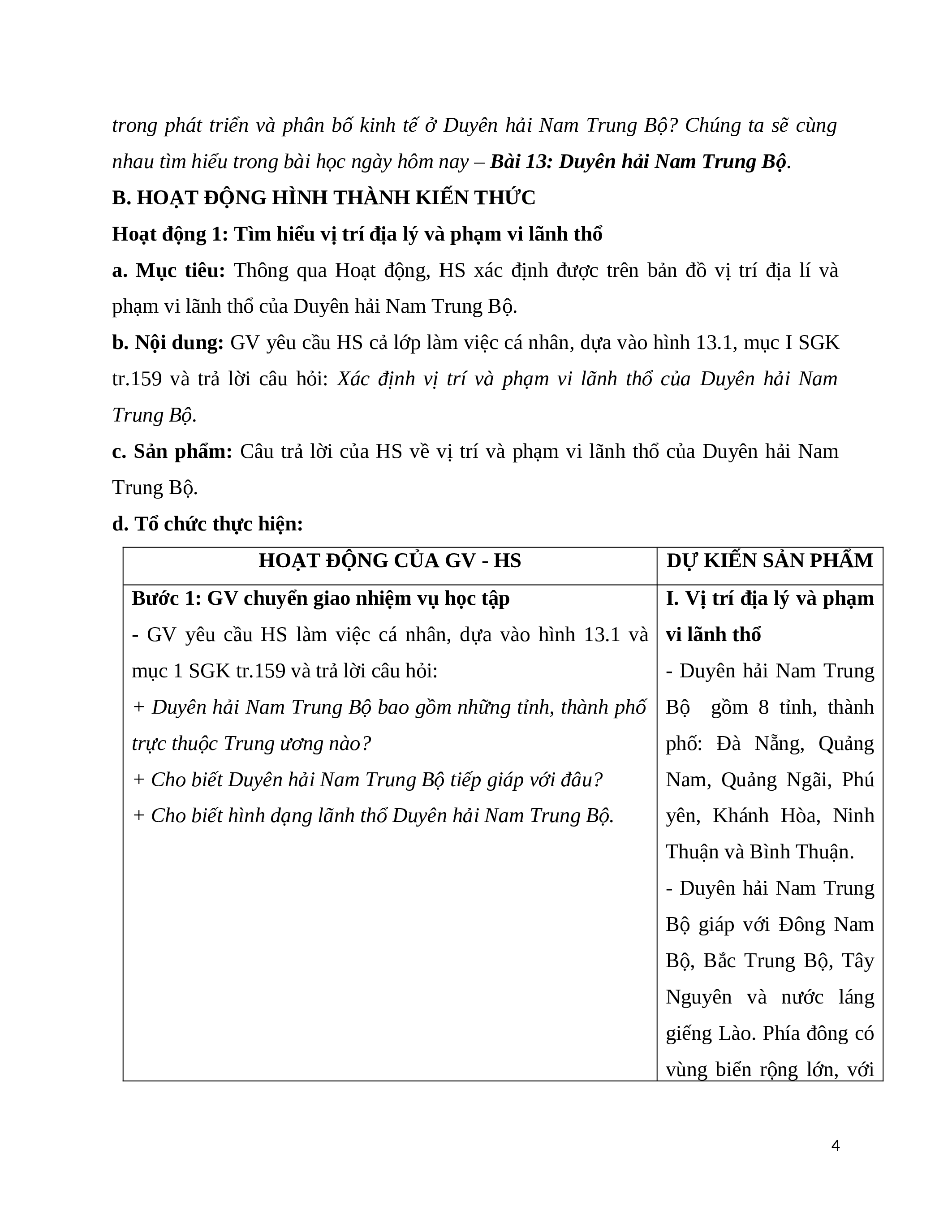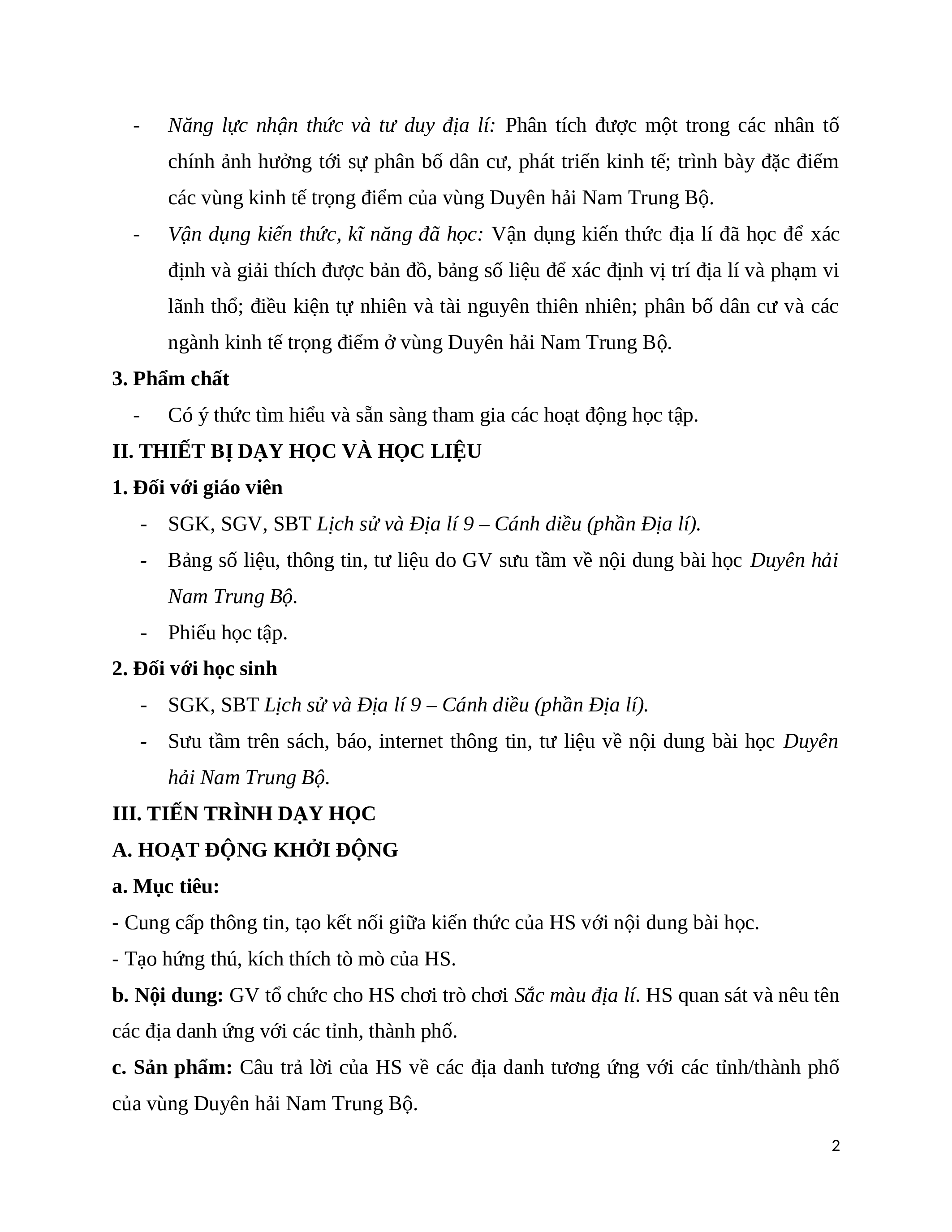 Giáo án Bài 13 Địa lí 9 Cánh diều: Duyên hải Nam Trung Bộ