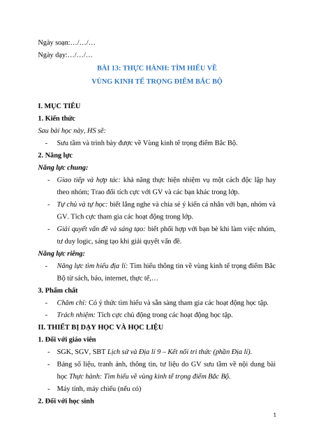 Giáo án Bài 13 Địa lí 9 Kết nối tri thức (2024): Thực hành