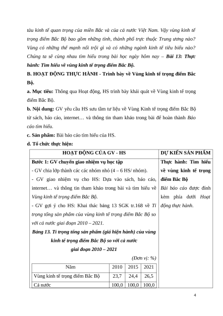 B. HOẠT ĐỘNG THỰC HÀNH - Trình bày về Vùng kinh tế trọng điểm Bắc Bộ.