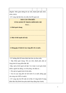 - GV giao nhiệm vụ cho HS: Dựa vào sách, báo cáo, điểm Bắc Bộ