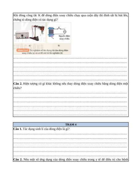 Câu 2. Hiện tượng có gì khác không nếu thay dòng điện xoay chiều bằng dòng điện một chiều?