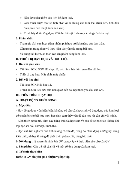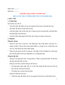- Trình bày được ứng dụng từ tính chất vật lí chung và riêng của kim loại. 2. Năng lực