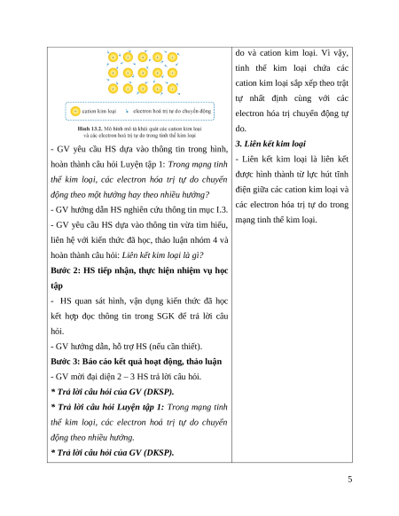 loại, vị trí của các ion trong mạng tinh thể, sự hình thành liên kết kim loại. 3